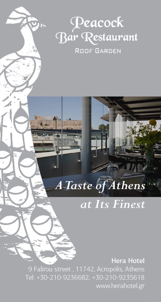 Nestled at the foot of the Acropolis, inside the elegant Hera Hotel, Peacock Restaurant invites you to experience the best of Greek and Mediterranean cuisine in a warm, stylish setting.